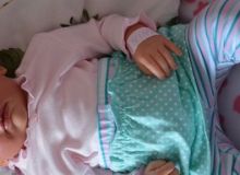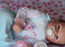 Nina je zrebornovaná z obľúbenej stavebnice návrhárky gudrun legler. je pekne namaľovaná vo viacerých vrstvách, nechýbajú žilky na tvári a končatiNÁCH, ČERVEň, zosvetlenie a tiene tak, ako vyzerá naozajstná novorodenecká pokožka a samozrejme i realistické dlane a chodidlá a manikúra na nechtíkoch. Vlásky sú po jednom vpichované v rôznych smeroch tak, aby vytvárali reálny vzhľad :-). Sú krásne a jemnučké na dotyk. Ninka má vo vnútri pusinky vlepený magnet na uchytenie cumlíka. Ninka ma po dokončení mojej práce milo prekvapila aká je reálna a krásna :-) Ďakujem Gudrun Legler <3 <3 <3
